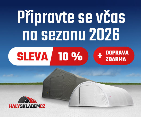 Připravte se na sezonu 2026 – Objednejte nyní plachtovou halu nebo přístřešek s dodáním za 2 až 3 měsíce a získáte SLEVU 10 %. Součástí akce je doprava zdarma. Po domluvě...